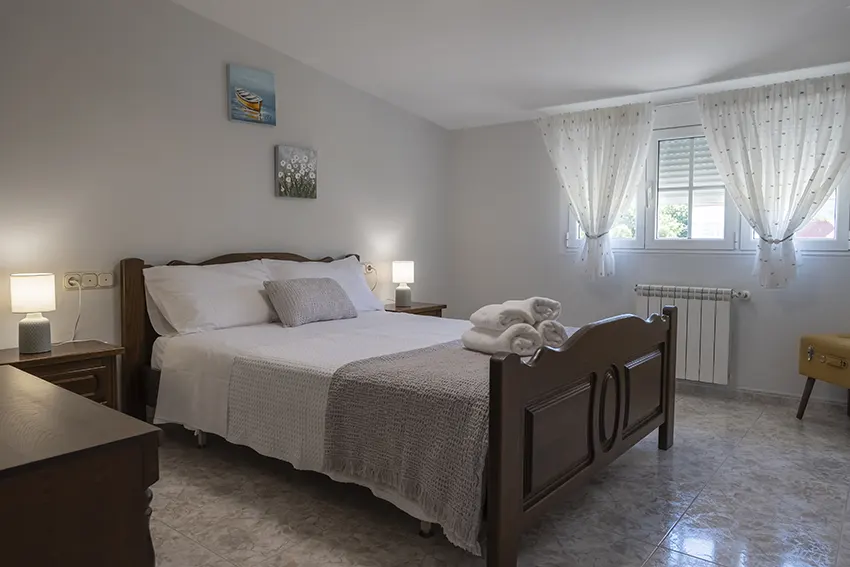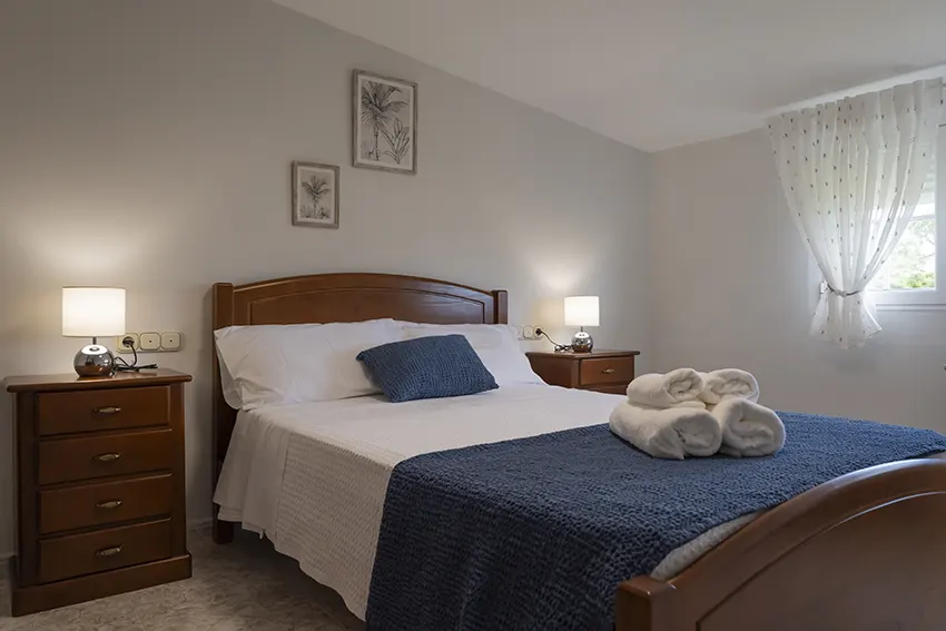 Características: habitación con vistas al jardín, barbacoa, piscina y Brañas de Laíño. Cama doble amplia y confortable.