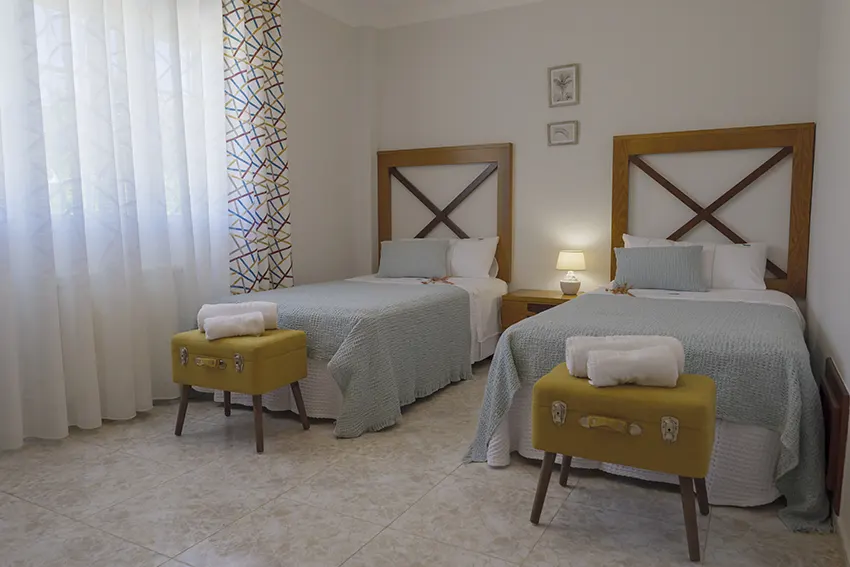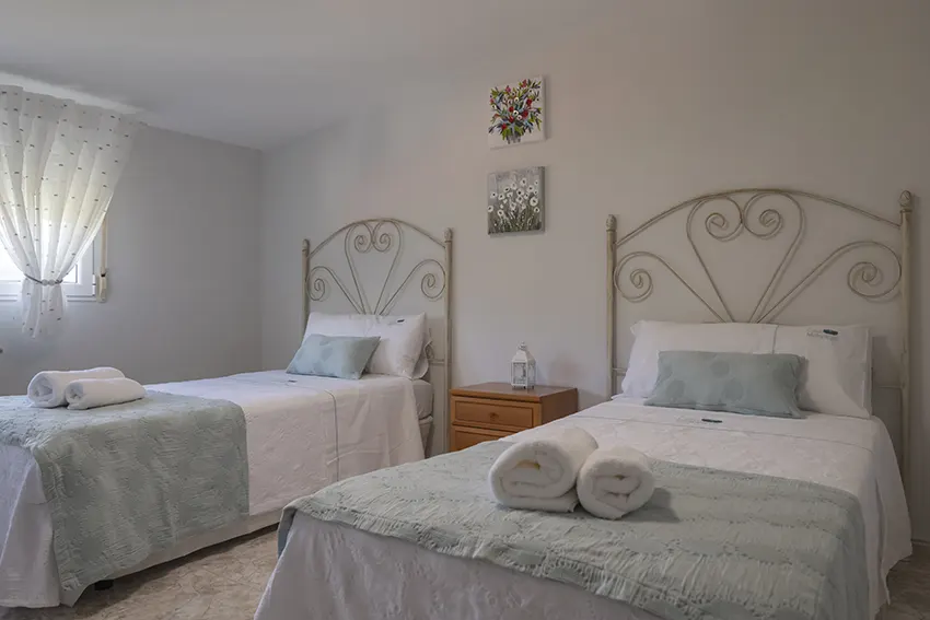 Características: habitación con vistas el jardin y monte. Cama individuales amplias y muy confortables.