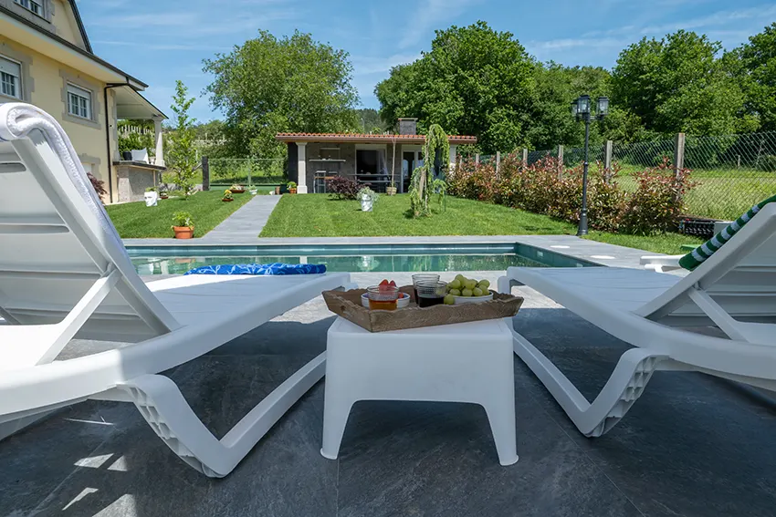 Después de una jornada entre rías, senderos y marisco, regresas a casa. Al tuyo por unos días. Te lanzas sin pensarlo a la piscina: el calor se disuelve, la mente se apaga. Flotar es lo más parecido a no tener preocupaciones.